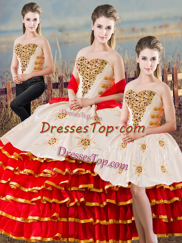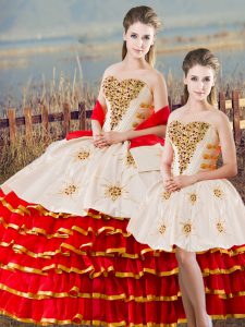 Superior Sweetheart Sleeveless Lace Up 15th Birthday Dress White And Red Organza