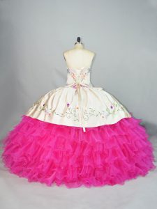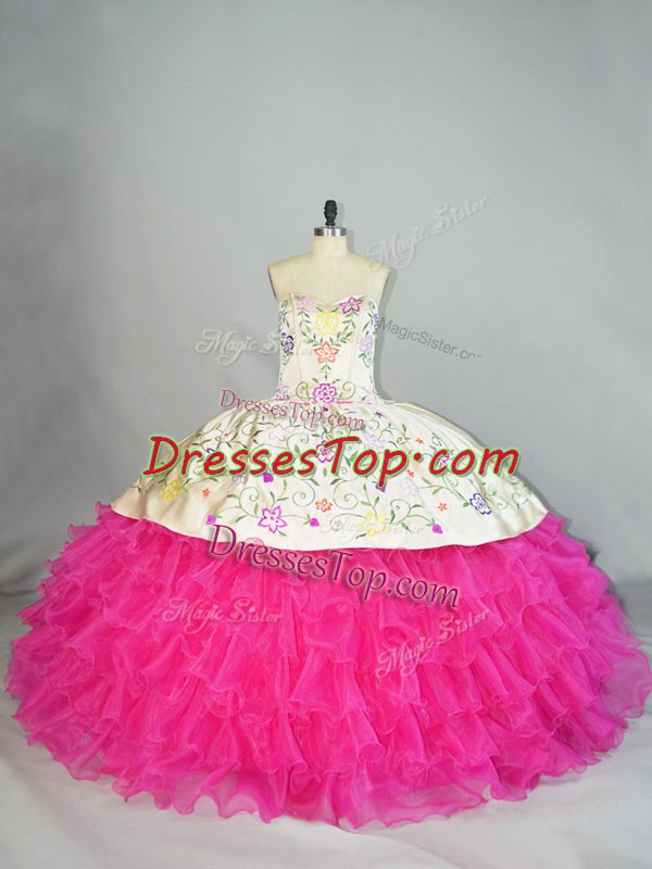 Superior Sweetheart Sleeveless Lace Up Vestidos de Quinceanera Fuchsia Organza