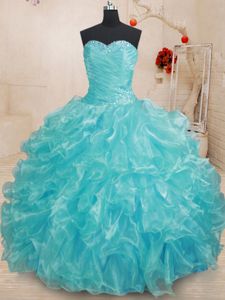 Superior Sweetheart Sleeveless Organza Quinceanera Dress Beading and Ruffles Lace Up