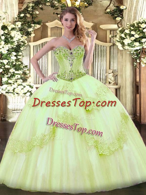 Superior Tulle Sleeveless Sweet 16 Dress and Beading