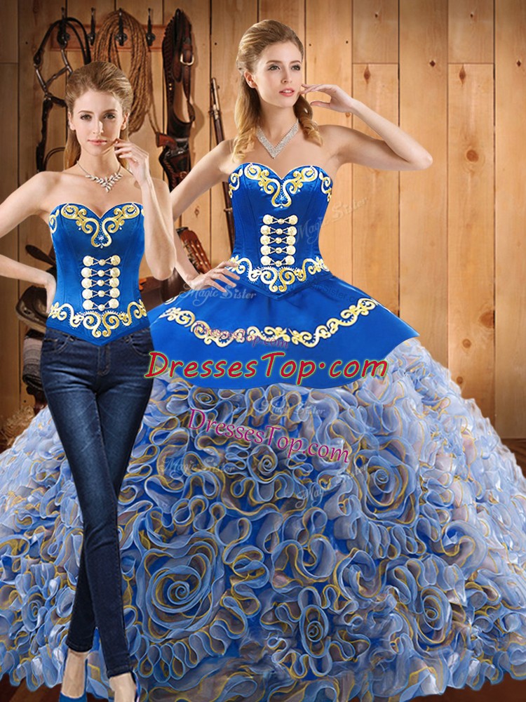 Sweep Train Ball Gowns Ball Gown Prom Dress Multi-color Sweetheart Satin and Fabric With Rolling Flowers Sleeveless With Train Lace Up