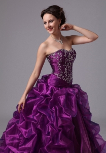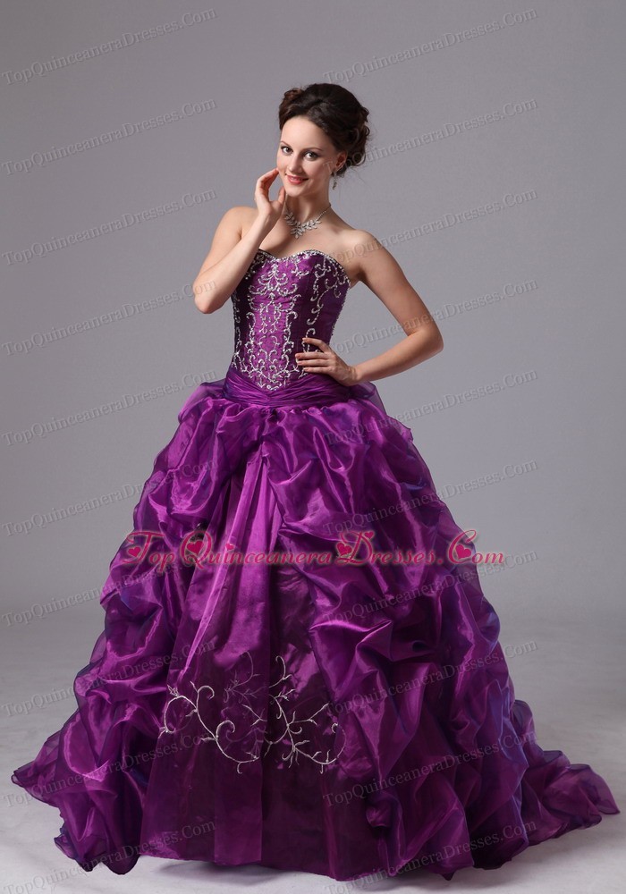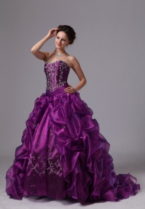 Sweep Train Embroidery Eggplant Purple Military Ball Gowns