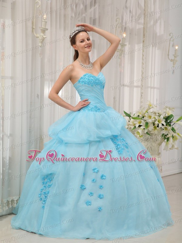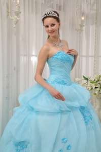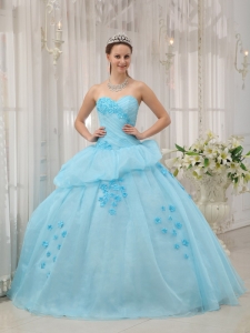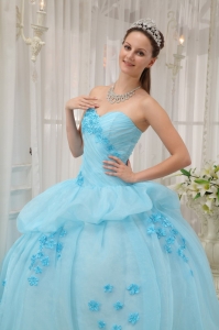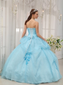 Sweet 16th Dresses Sweetheart Organza Light Blue Appliques