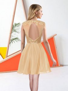 Sweet A-line Damas Dress Champagne Bateau Chiffon Sleeveless Knee Length Backless
