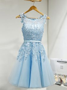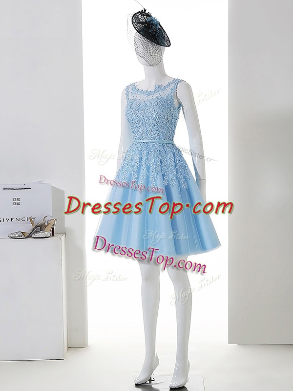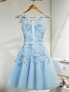 Sweet Baby Blue Scoop Zipper Lace Quinceanera Court of Honor Dress Sleeveless