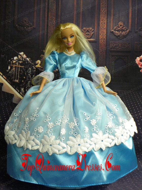 Sweet Ball Gown Baby Blue and Lace Handmade Dresses Fashion Party Clothes Gown Skirt For Barbie Doll