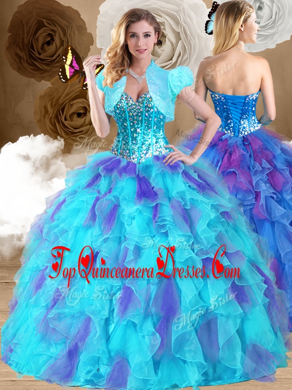 Sweet Ball Gown Sweetheart Ruffles Sweet 16 Dresses in Multi Color