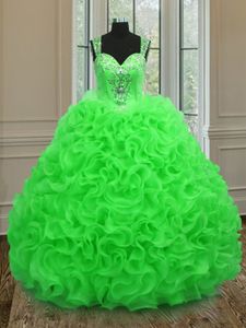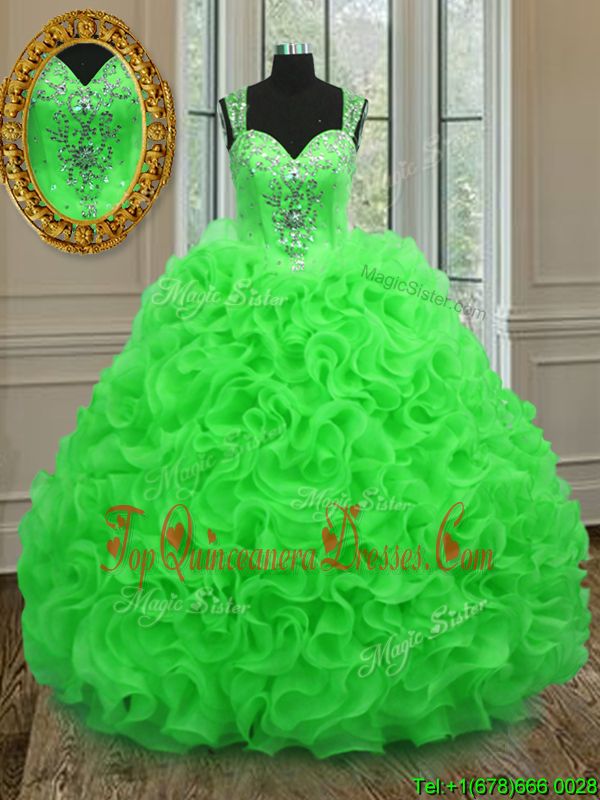 Sweet Ball Gowns Straps Sleeveless Organza Floor Length Zipper Beading and Ruffles Sweet 16 Dresses