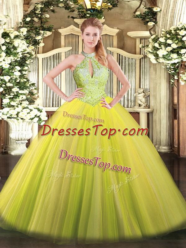 Sweet Halter Top Sleeveless Tulle Sweet 16 Quinceanera Dress Sequins Lace Up