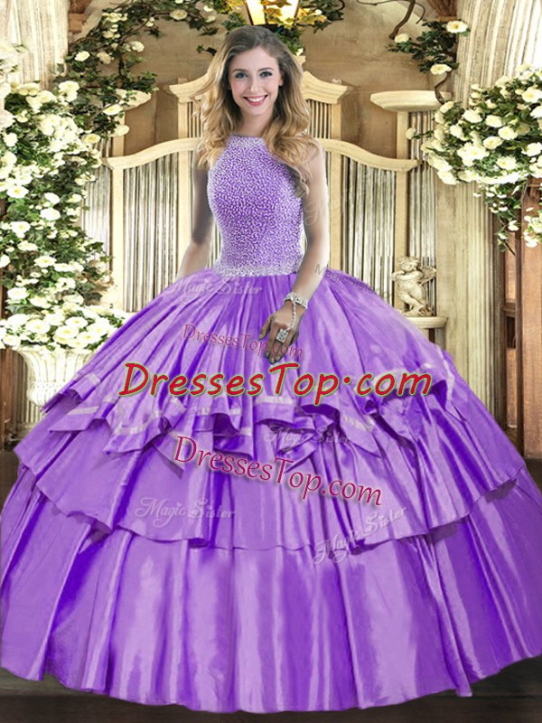 Sweet Lavender Lace Up Quinceanera Dress Beading and Ruffled Layers Sleeveless Floor Length