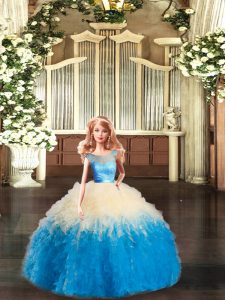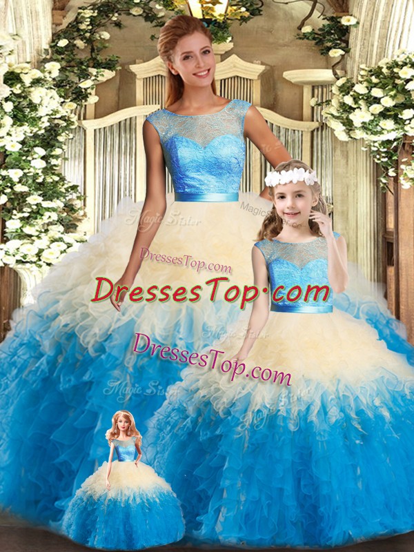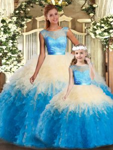 Sweet Multi-color Scoop Backless Lace and Ruffles Quince Ball Gowns Sleeveless