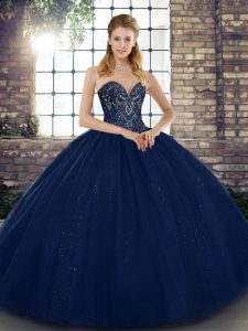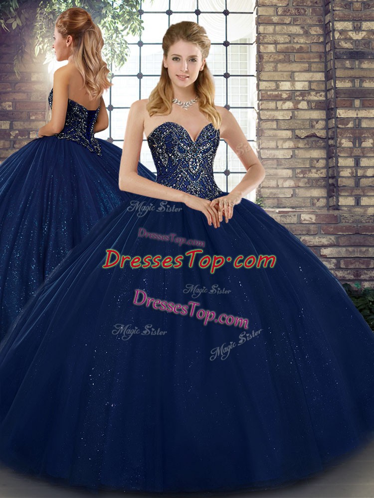 Sweet Navy Blue Sweetheart Lace Up Beading Ball Gown Prom Dress Sleeveless