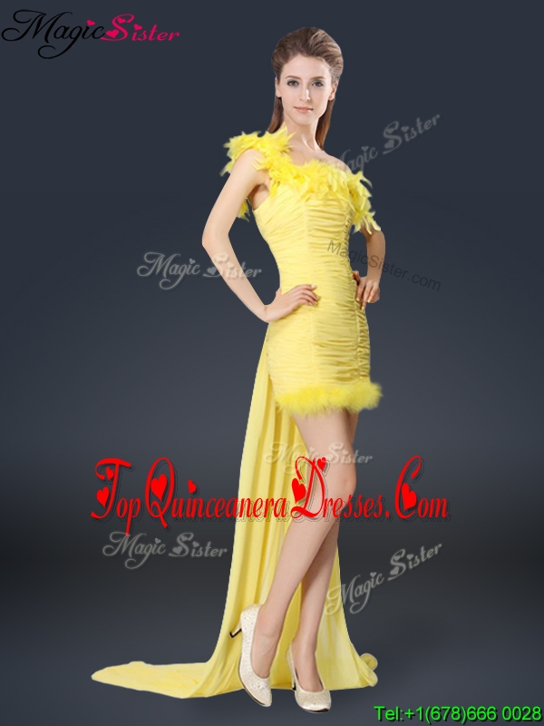 Sweet One Shoulder Watteau Train Fashionable Damas Dresses in Yellow