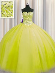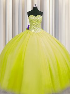 Sweet Really Puffy Sleeveless Beading Lace Up Quince Ball Gowns