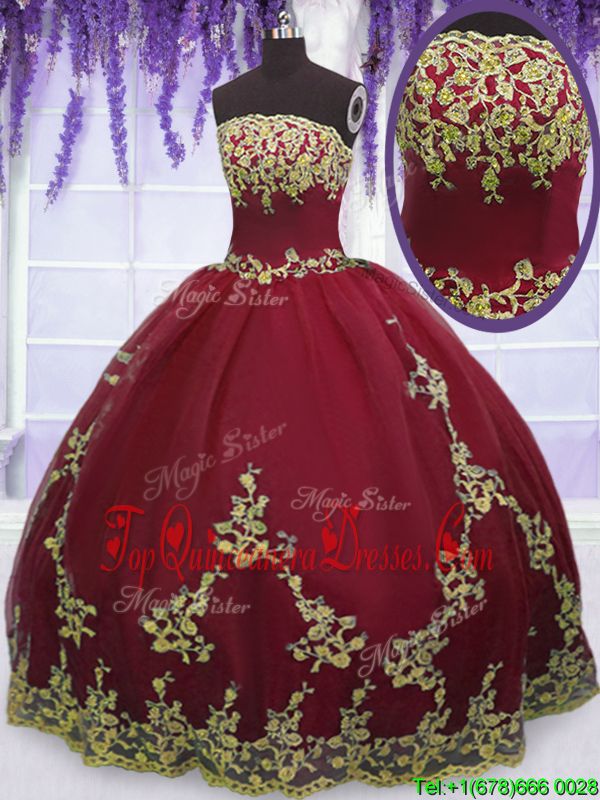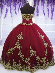 Sweet Strapless Sleeveless Zipper 15th Birthday Dress Red Tulle