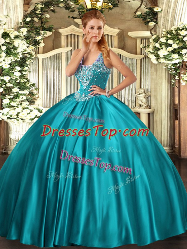 Sweet Straps Sleeveless Satin 15 Quinceanera Dress Beading Lace Up