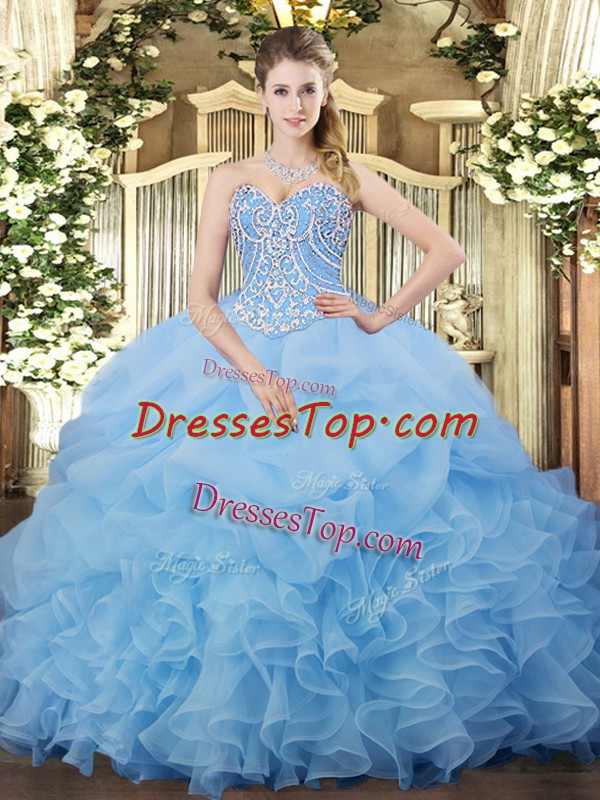 Sweet Sweetheart Sleeveless Organza Sweet 16 Dress Beading and Ruffles and Pick Ups Lace Up