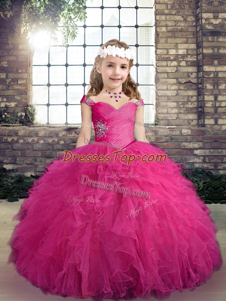 Sweet Tulle Sleeveless Floor Length Kids Formal Wear and Beading and Ruffles