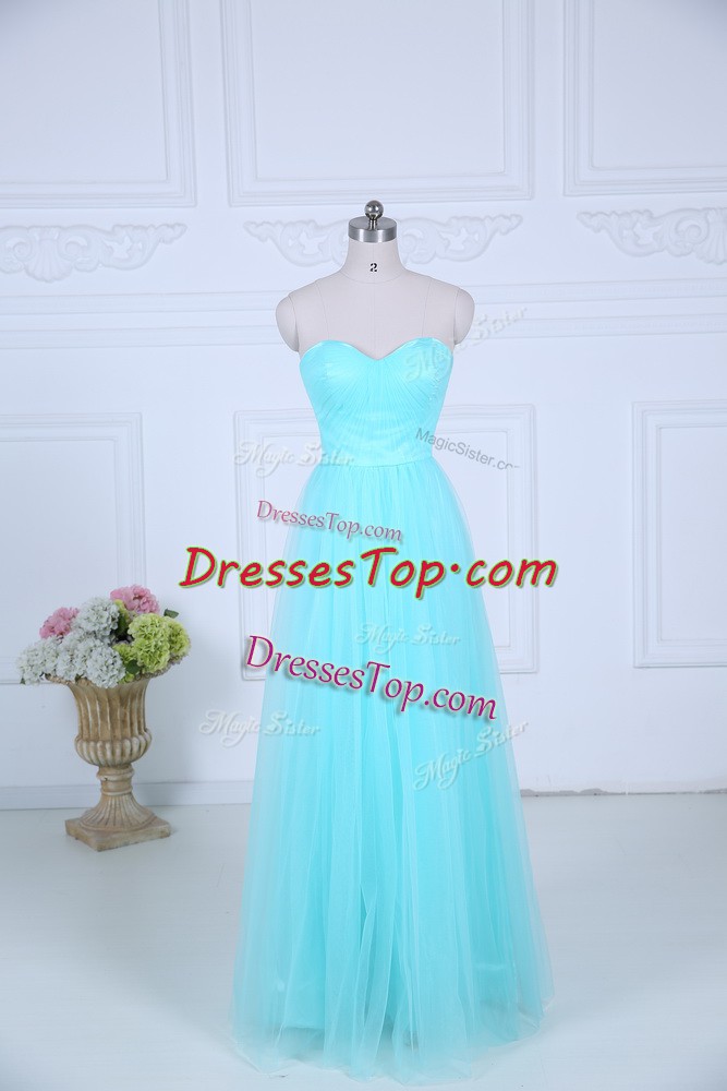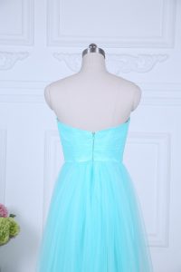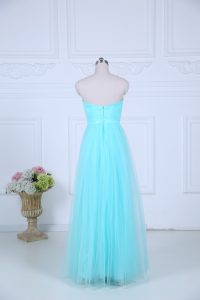 Sweet Tulle Sweetheart Sleeveless Zipper Ruching Quinceanera Court of Honor Dress in Aqua Blue