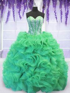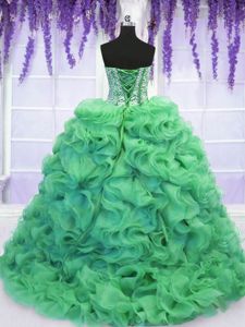 Sweet With Train Ball Gowns Sleeveless Turquoise Ball Gown Prom Dress Brush Train Lace Up