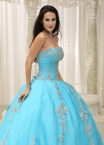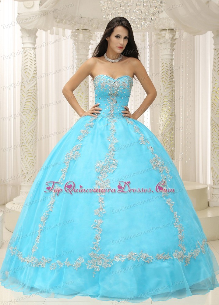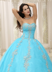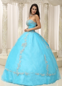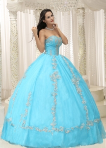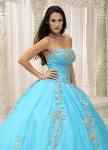 Sweetheart Applique Aqua Blue Quinceanera Dress