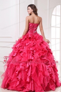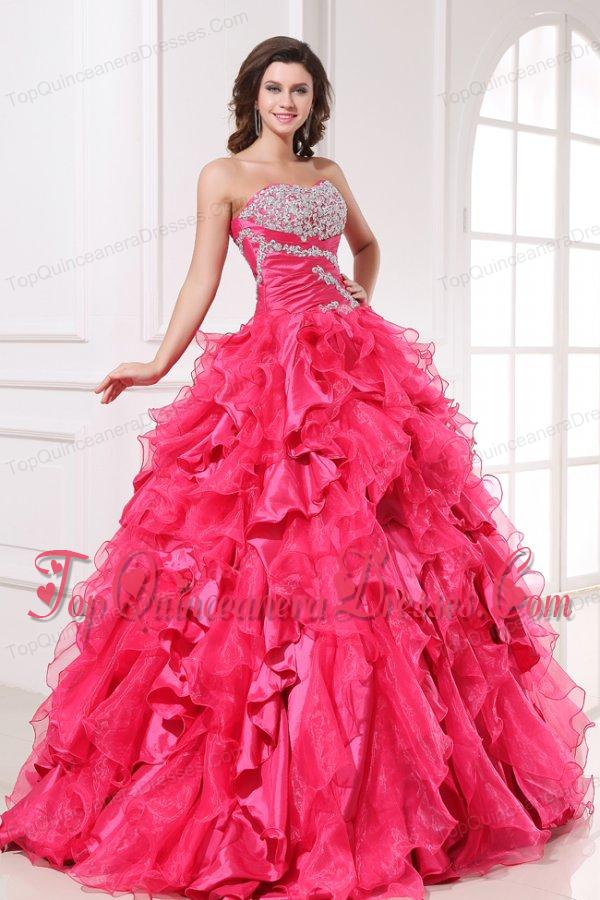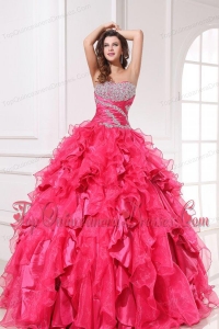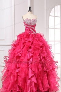Sweetheart Beading and Ruffles Long Hot Pink Quinceanera Dress