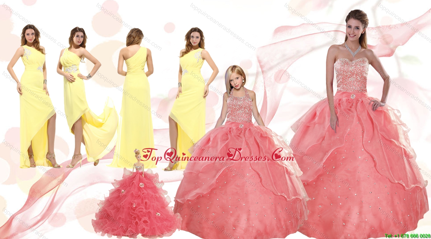 Sweetheart Beading Watermelon Sweet 16 Dress and One Shouler High Low Prom Dresses and Halter Top Beading Little Girl Dress