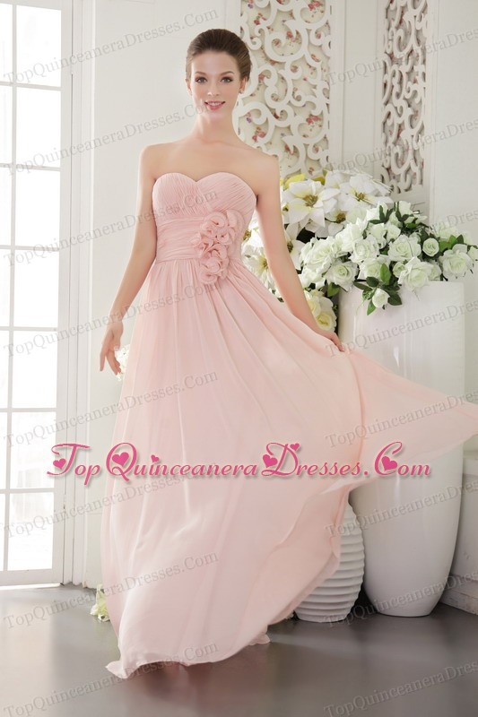Sweetheart Dama Dresses Pink Empire Chiffon Handle Flower