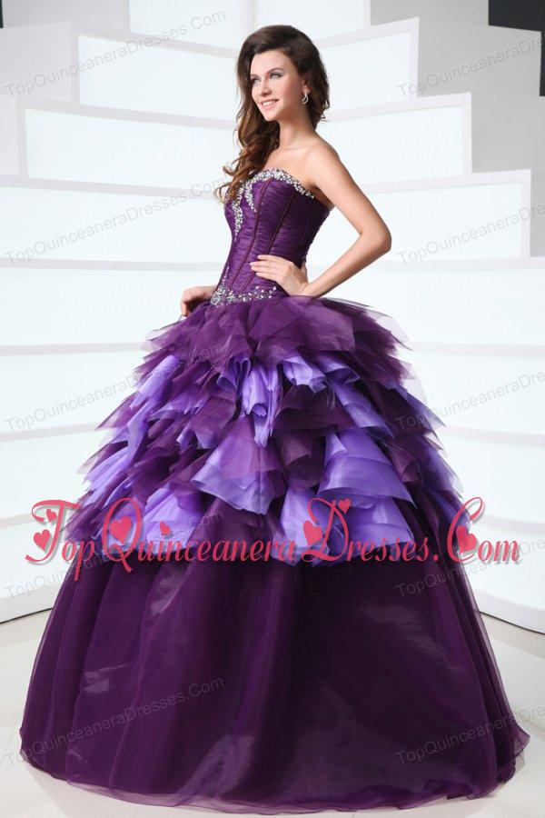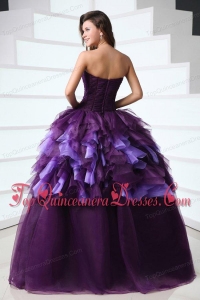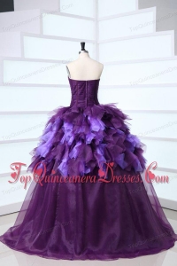 Sweetheart Dark Purple Sweet Train Quinceanera Dress with Beading