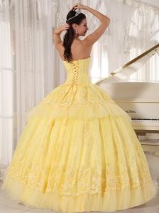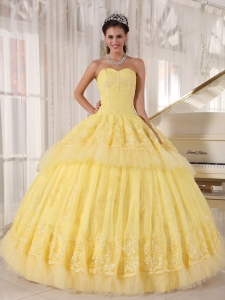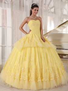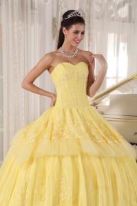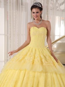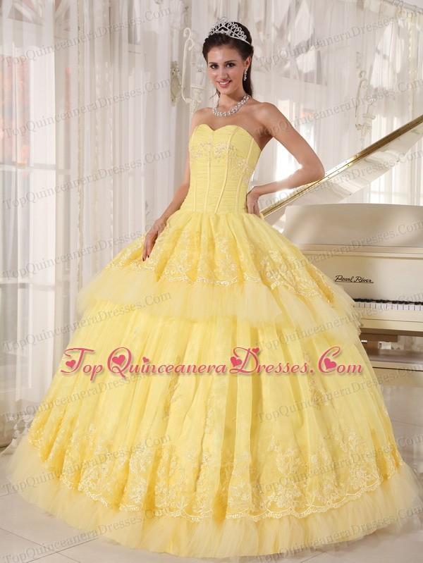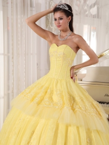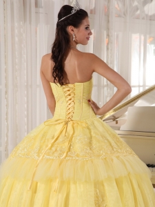 Sweetheart Organza Yellow Quinceanera DressAppliques Layers