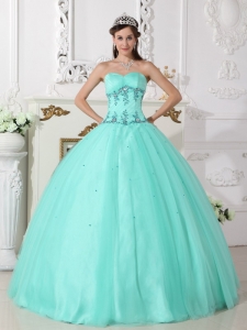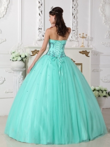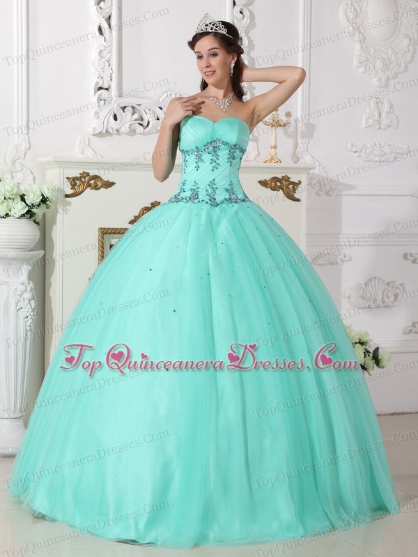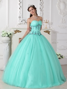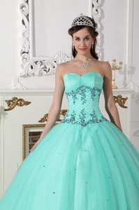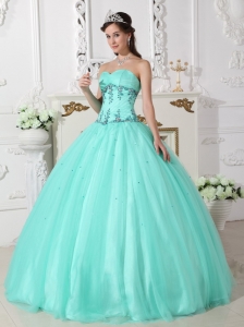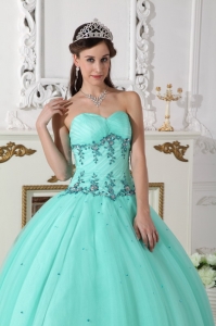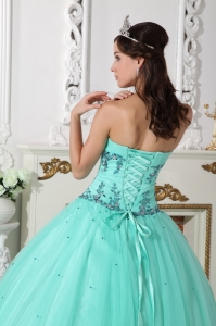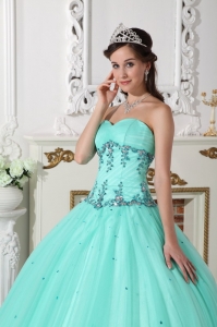 tulle and taffeta quinces dresses with puffy skirt and appliques, Sweetheart Quinceanera Dress Tulle Taffeta Beading Turquoise