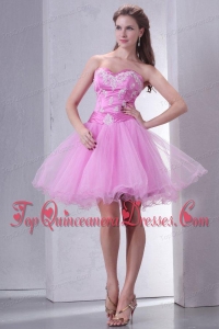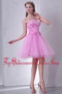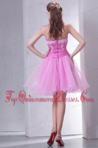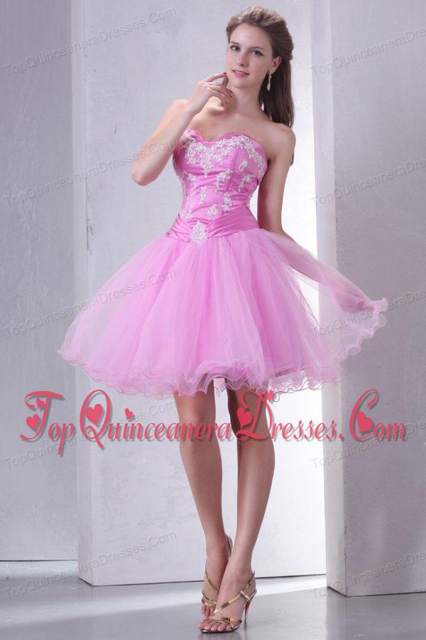 Sweetheart Rose Pink Short Organza Mini-length Dama Dress for Quinceanera with Appliques