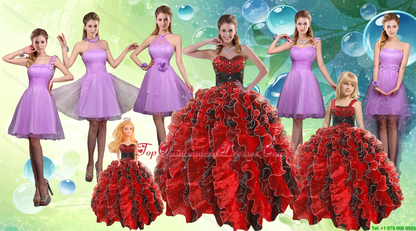 Sweetheart Ruffles Multi Color Quinceanera Dress and Knee Length Ruching Dama Dresses and Multi Color Little Girl Dress