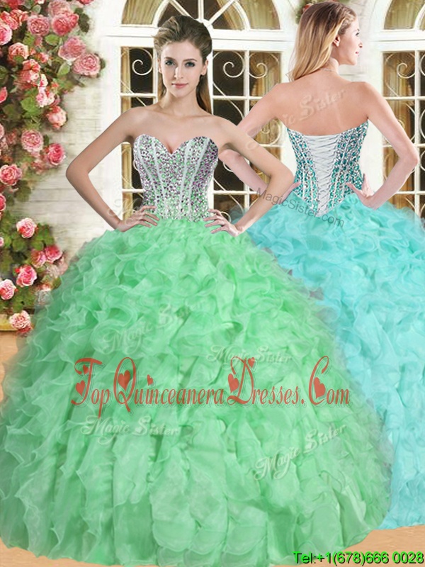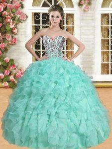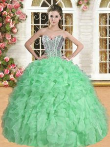 Sweetheart Sleeveless 15 Quinceanera Dress Floor Length Beading and Ruffles Organza
