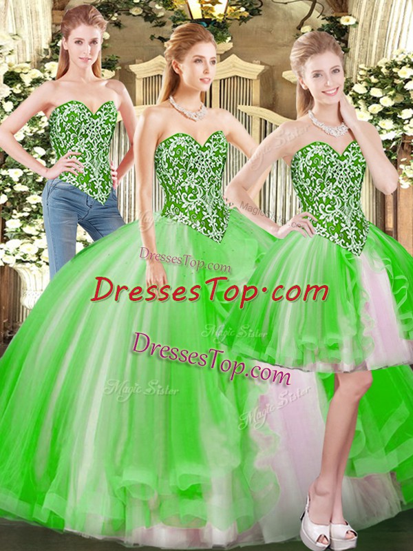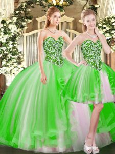 Sweetheart Sleeveless 15th Birthday Dress Floor Length Beading Tulle