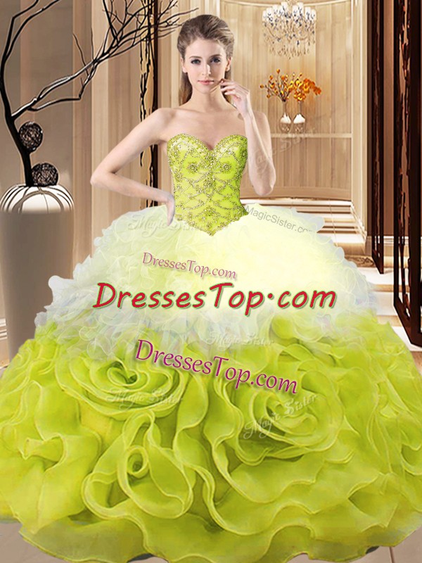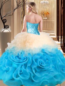 Sweetheart Sleeveless Ball Gown Prom Dress Floor Length Beading and Ruffles Multi-color Organza