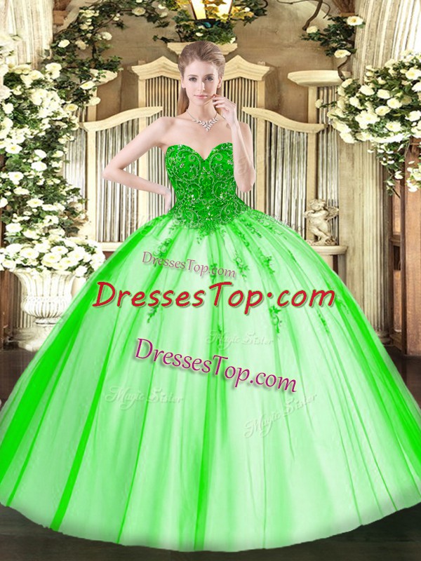 Sweetheart Sleeveless Ball Gown Prom Dress Floor Length Beading Tulle