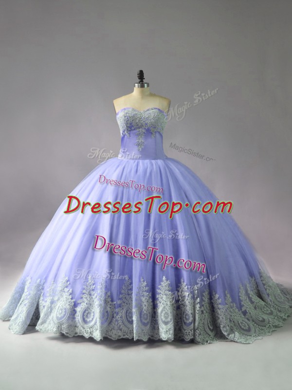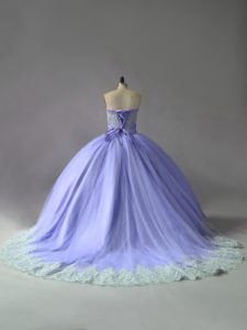 Sweetheart Sleeveless Court Train Lace Up Quinceanera Dresses Lavender Tulle