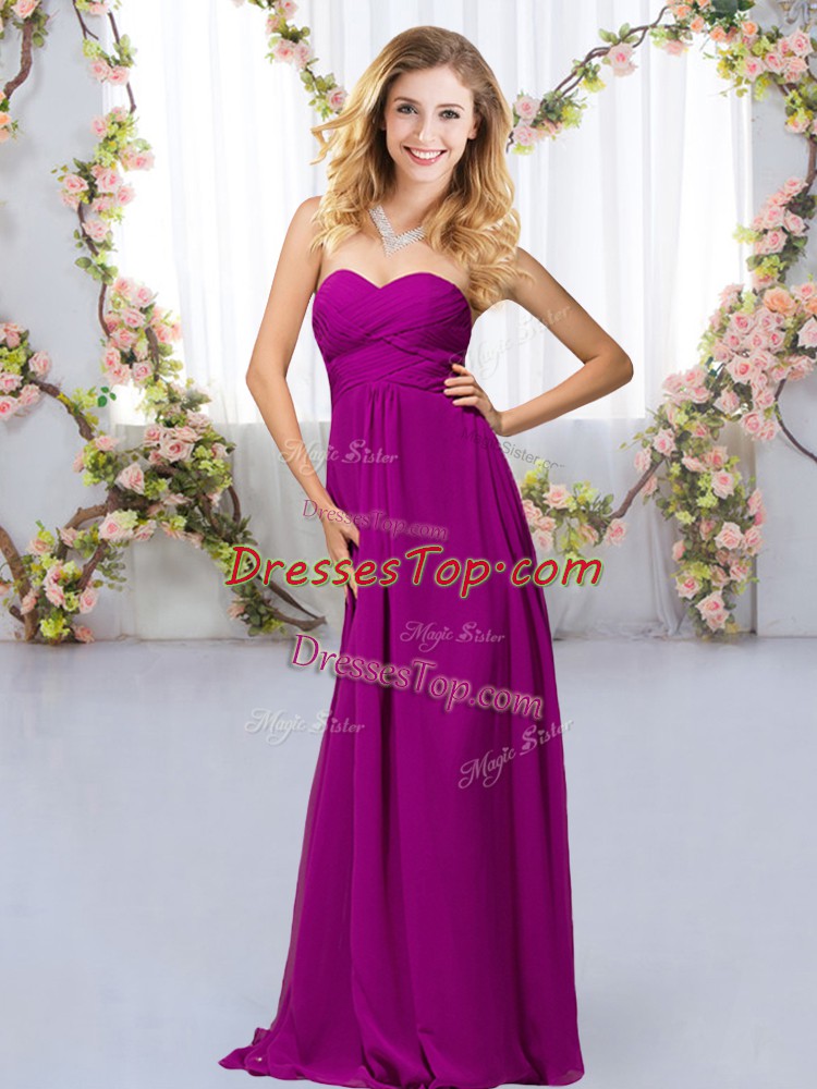Sweetheart Sleeveless Dama Dress for Quinceanera Floor Length Beading Purple Chiffon