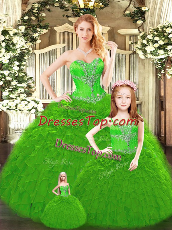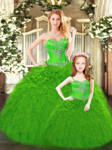Sweetheart Sleeveless Lace Up 15 Quinceanera Dress Green Tulle