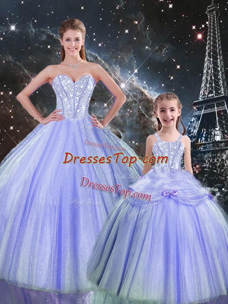 Sweetheart Sleeveless Lace Up 15 Quinceanera Dress Lavender Tulle