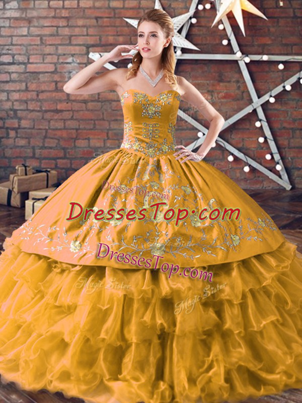 Sweetheart Sleeveless Lace Up Quince Ball Gowns Gold Organza