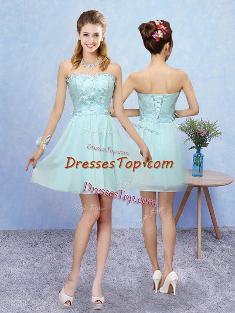 Sweetheart Sleeveless Lace Up Quinceanera Court Dresses Aqua Blue Tulle