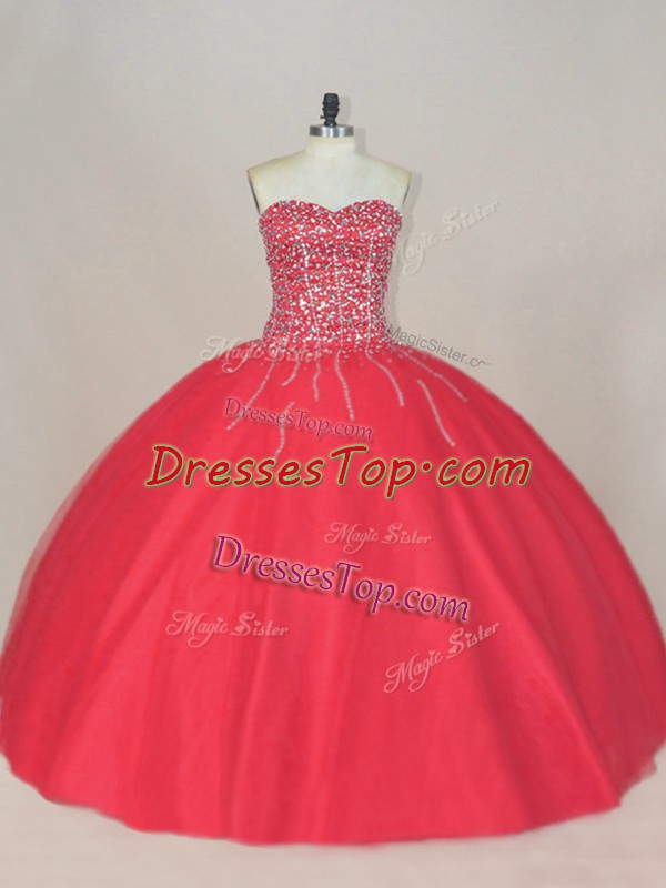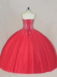 Sweetheart Sleeveless Lace Up Quinceanera Dress Coral Red Tulle