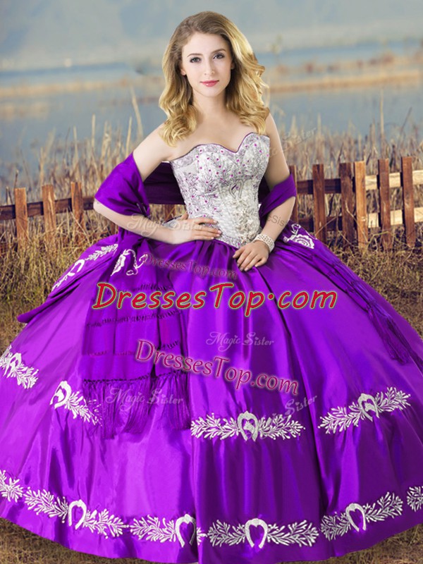 Sweetheart Sleeveless Lace Up Quinceanera Dresses Purple Satin