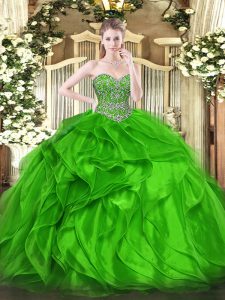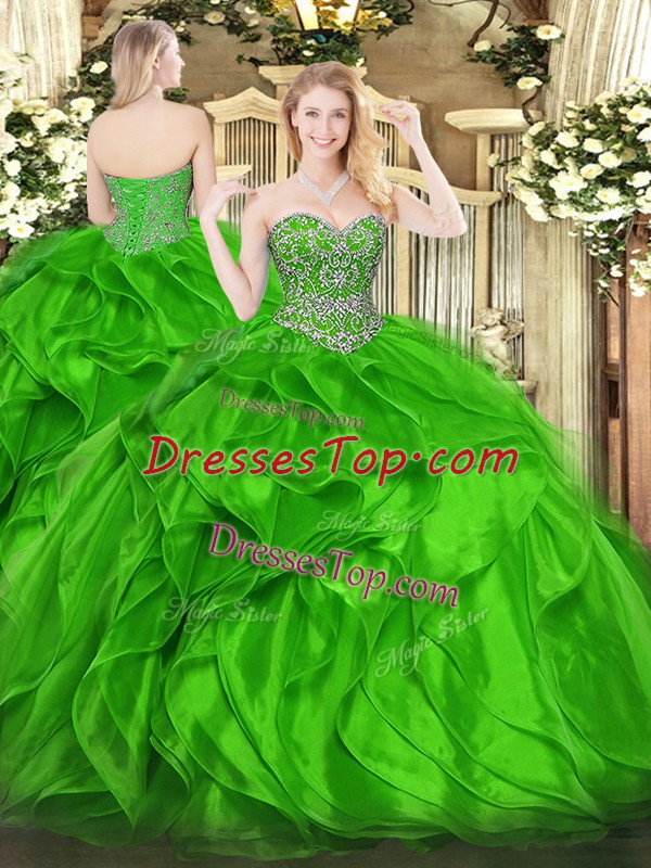 Sweetheart Sleeveless Lace Up Quinceanera Gown Green Organza