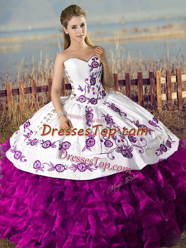 Sweetheart Sleeveless Lace Up Quinceanera Gowns White And Purple