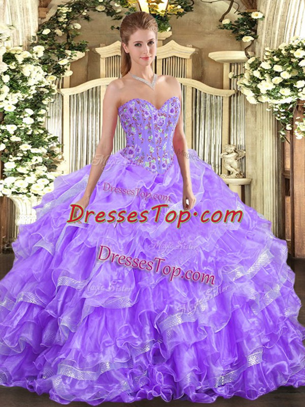 Sweetheart Sleeveless Lace Up Sweet 16 Dress Lavender Organza
