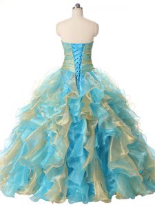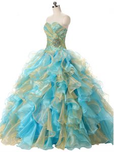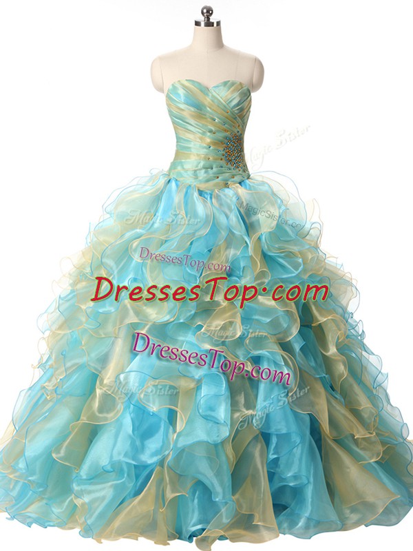 Sweetheart Sleeveless Lace Up Sweet 16 Dress Multi-color Organza
