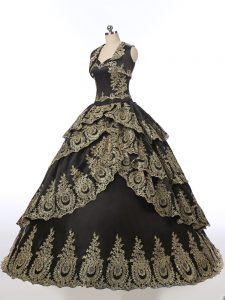 Sweetheart Sleeveless Lace Up Sweet 16 Dresses Black Satin